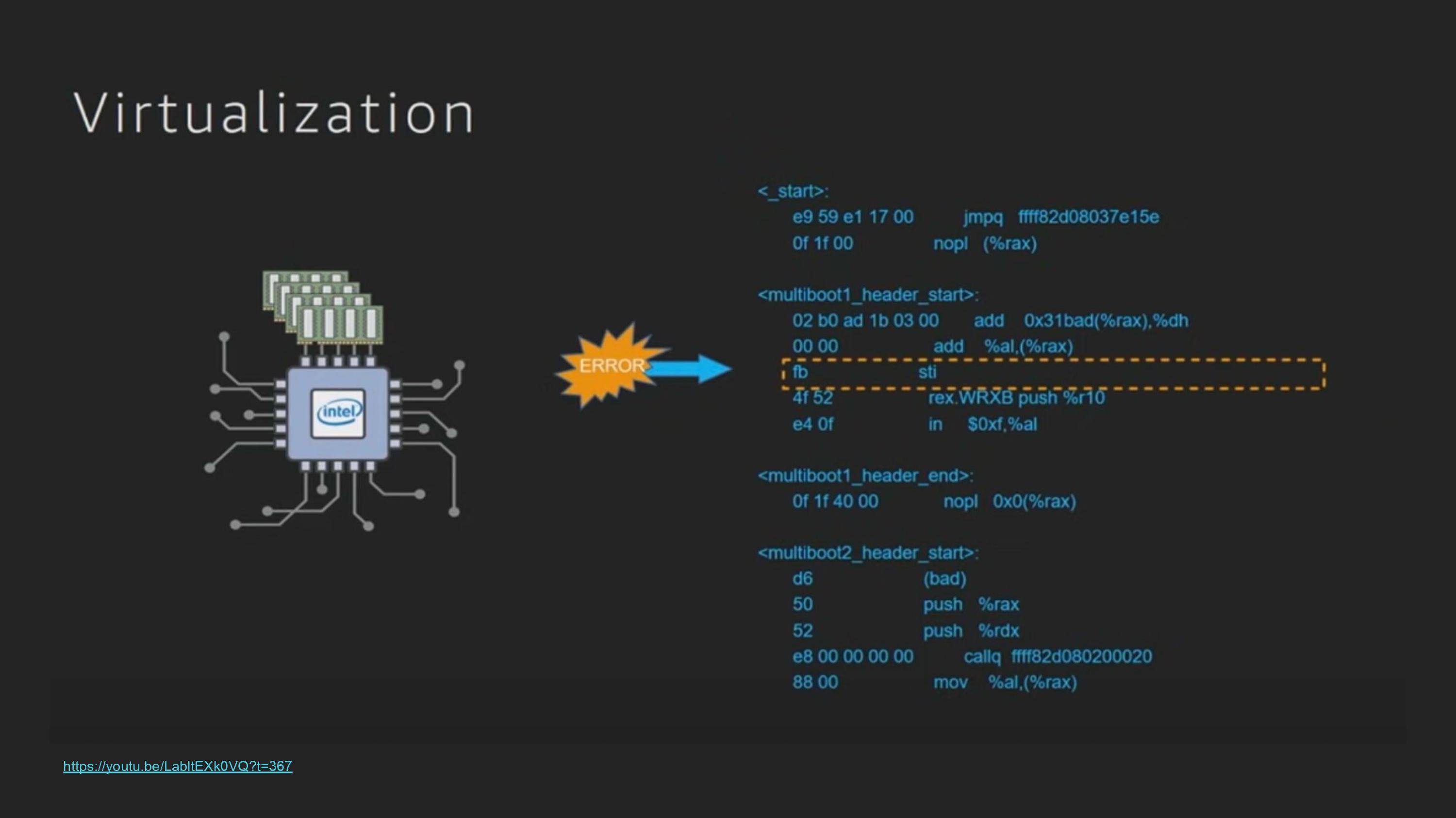 Virtualization이란 무엇인가? 갑자기 instruction level로 가보자.. (슬라이드에서 instruction을 이해할 필요는 없습니다)