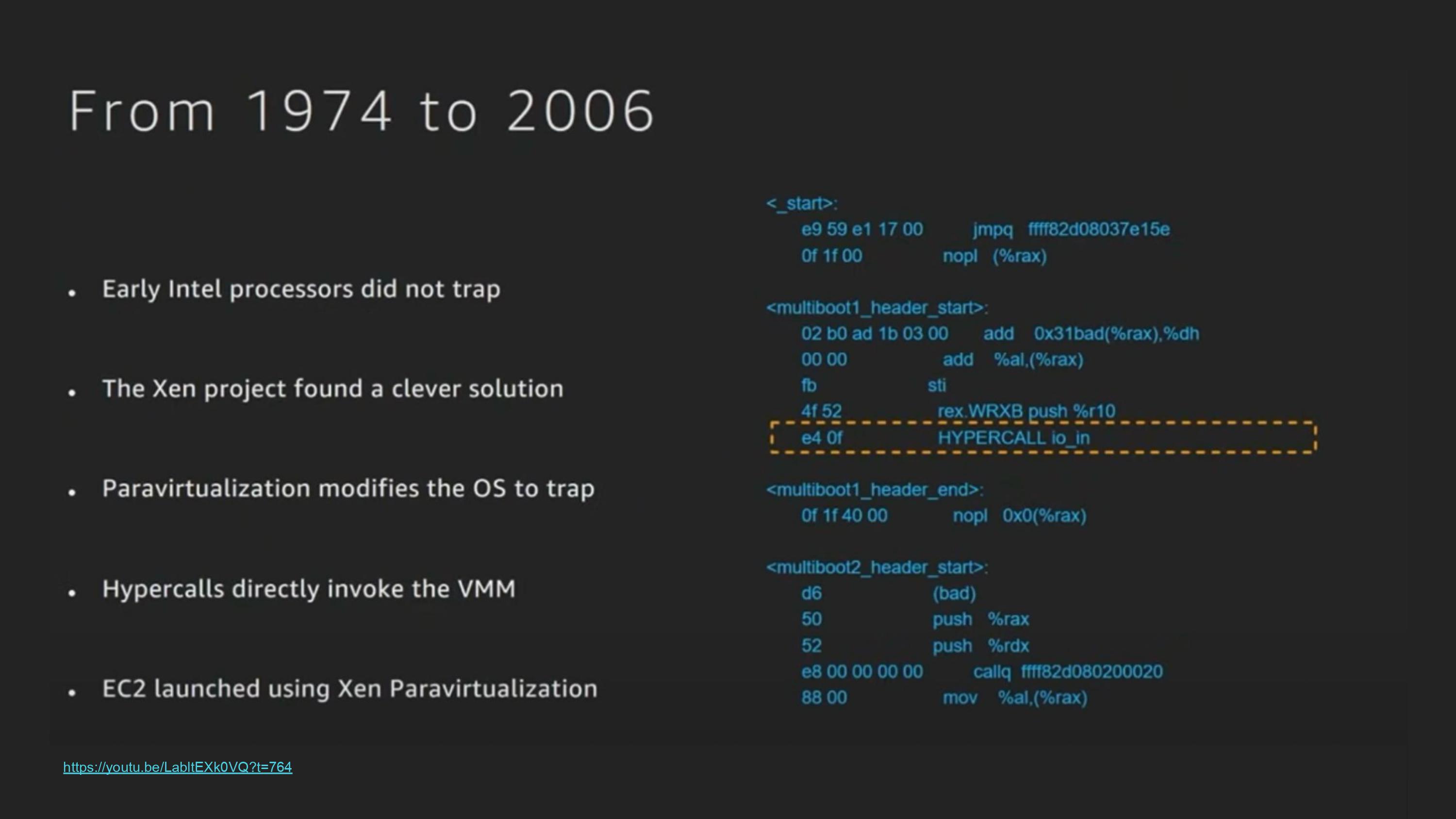 EC2가 처음 출시된 2006년, 70년대부터 존재한 virtualization이었지만, 당시 intel/amd processor들은 trap을 잘 처리하지 못했음.