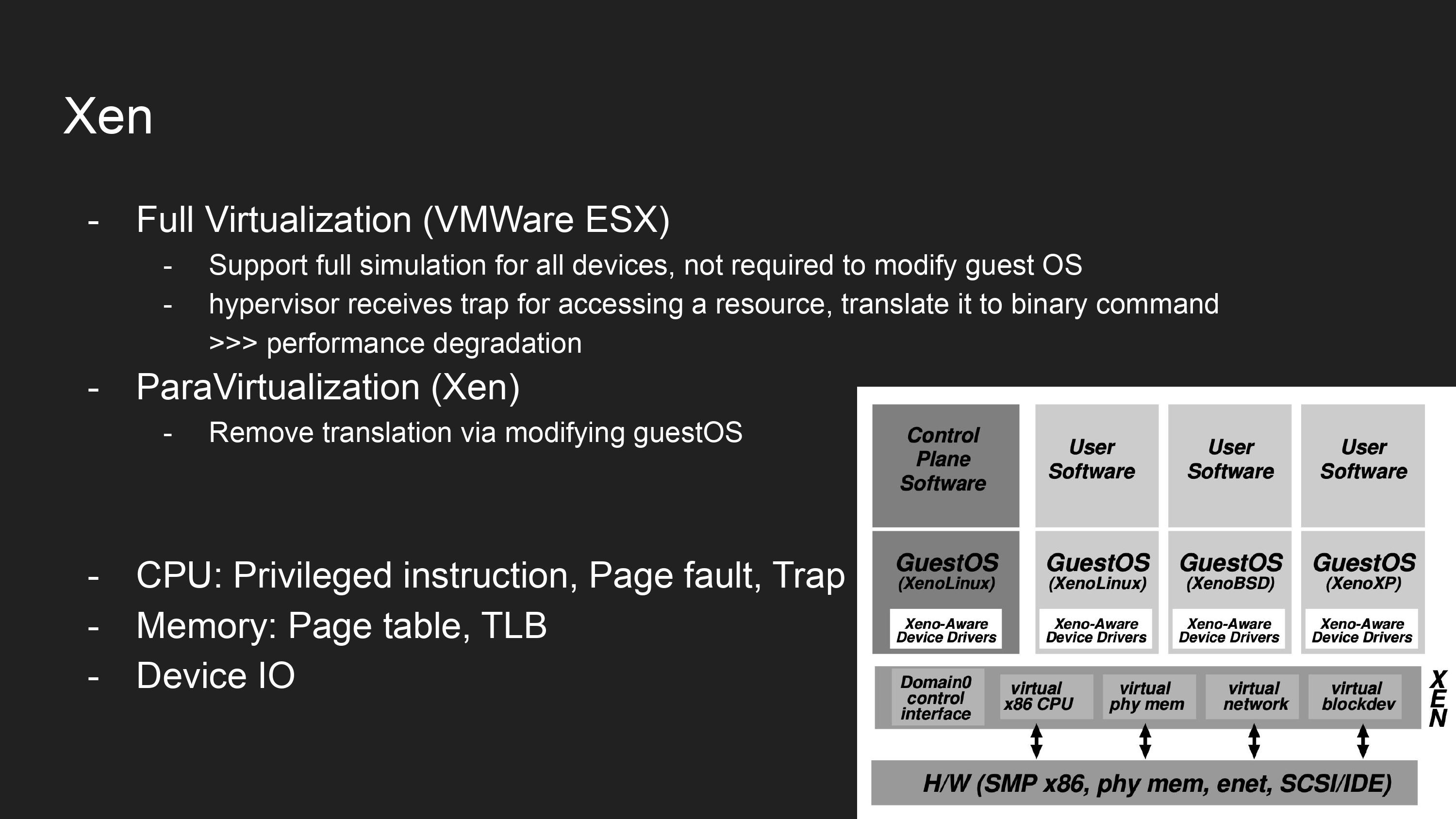 하지만 Xen에서 이 문제를 다른 방식으로 해결했는데, guest OS를 수정해서 trap을 수행하는 대신 직접 VMM을 호출하도록 변경 (Paravirtualization)