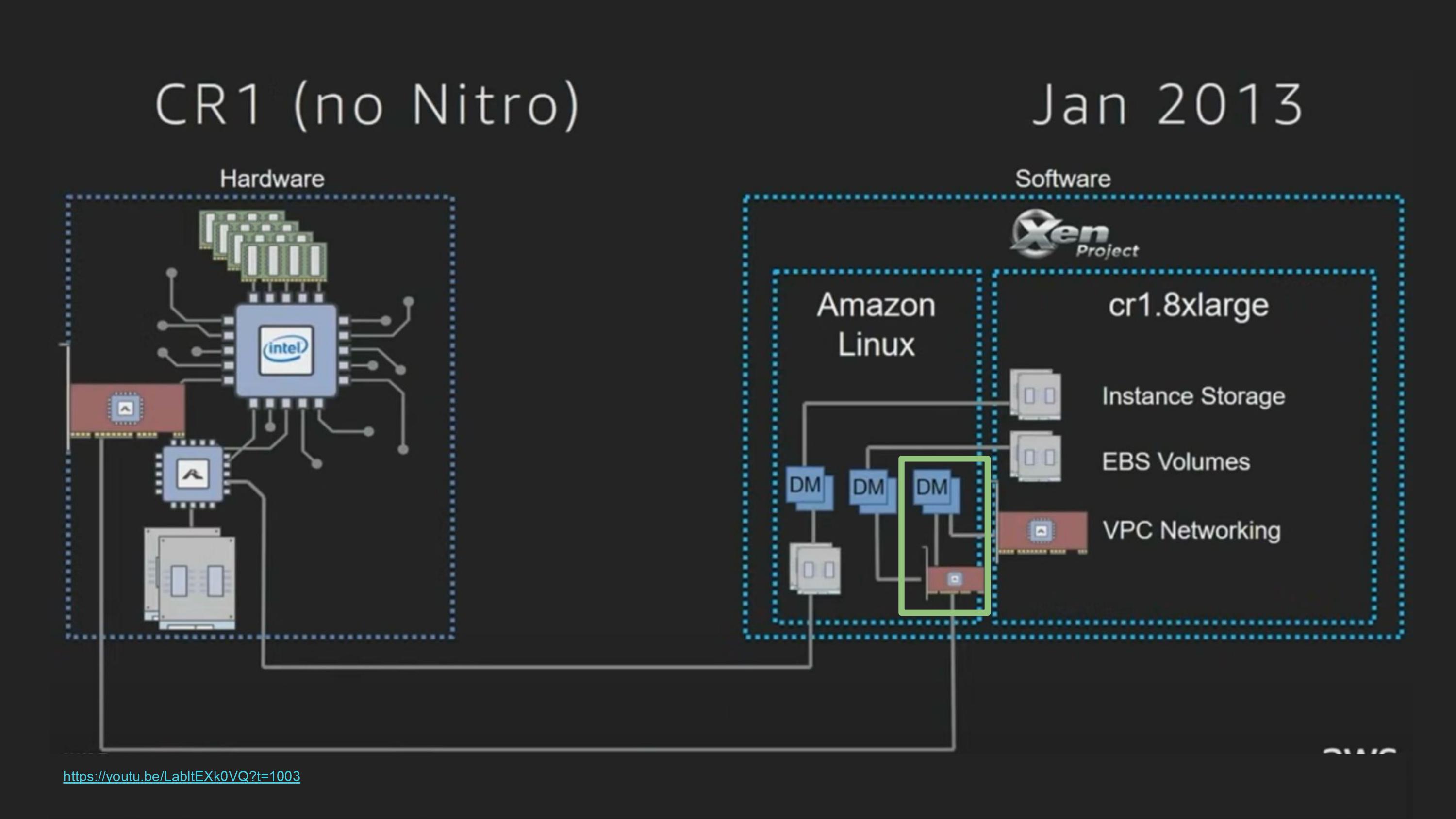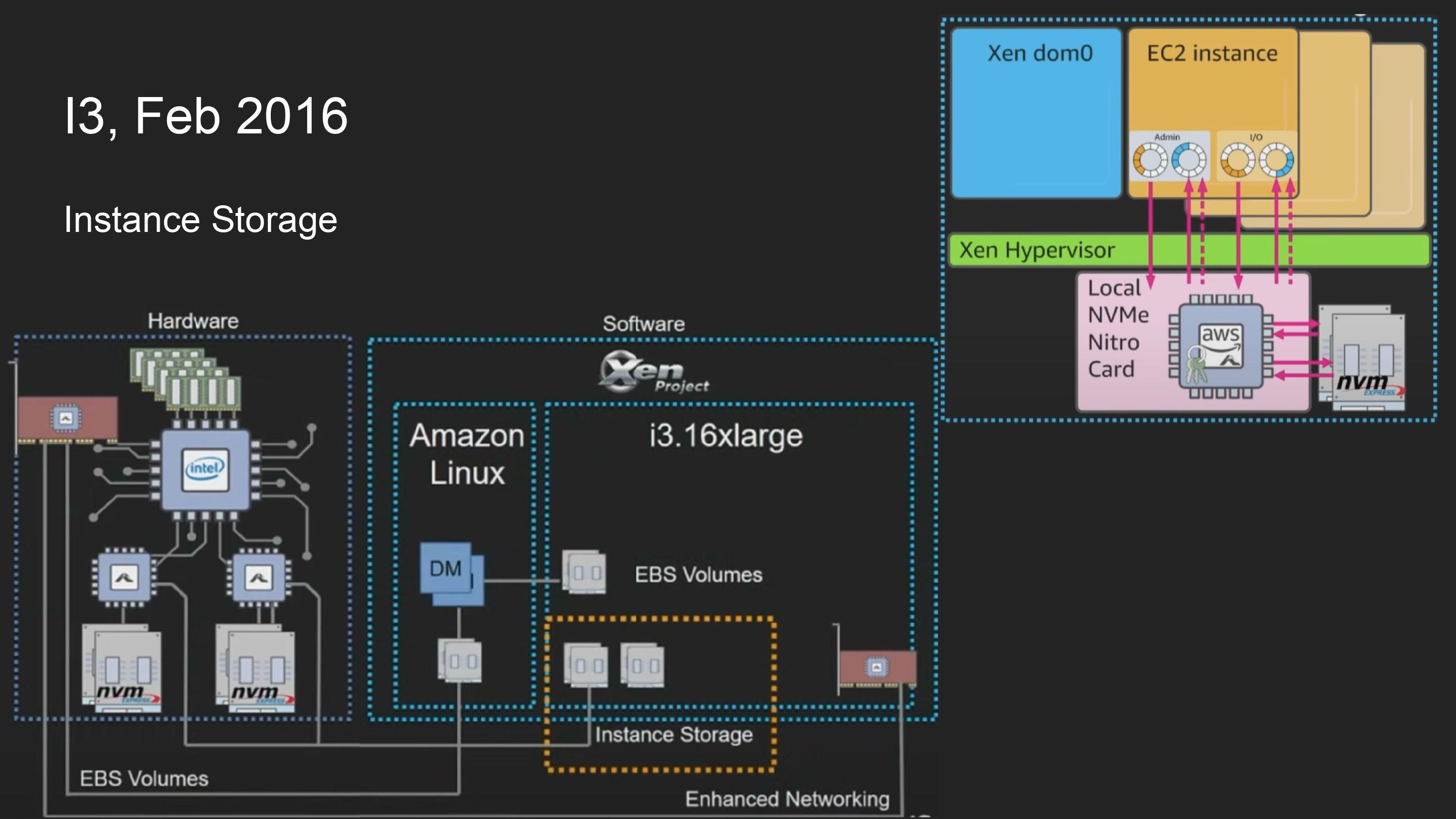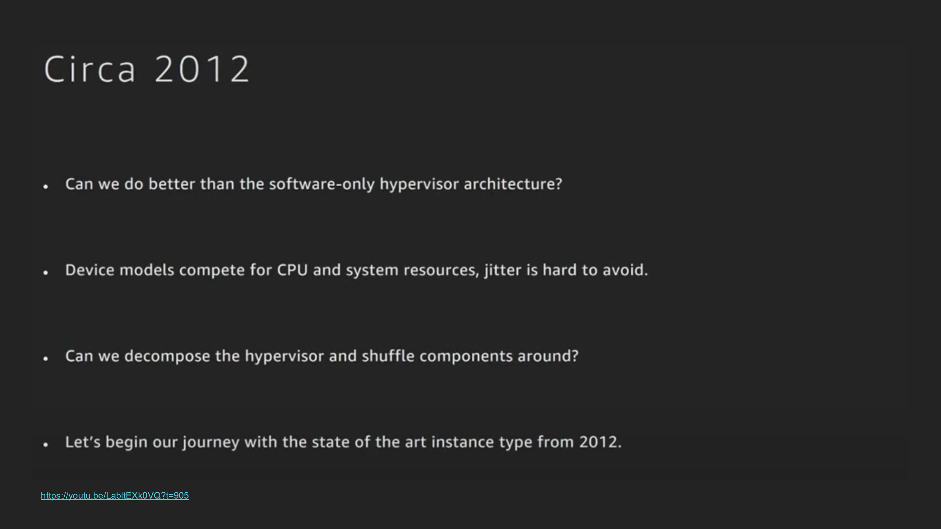 - (당시) 대부분의 hypervisor는 hw agnostic이지만, AWS는 datacenter를 가지고 있으므로 수직 최적화가 가능함