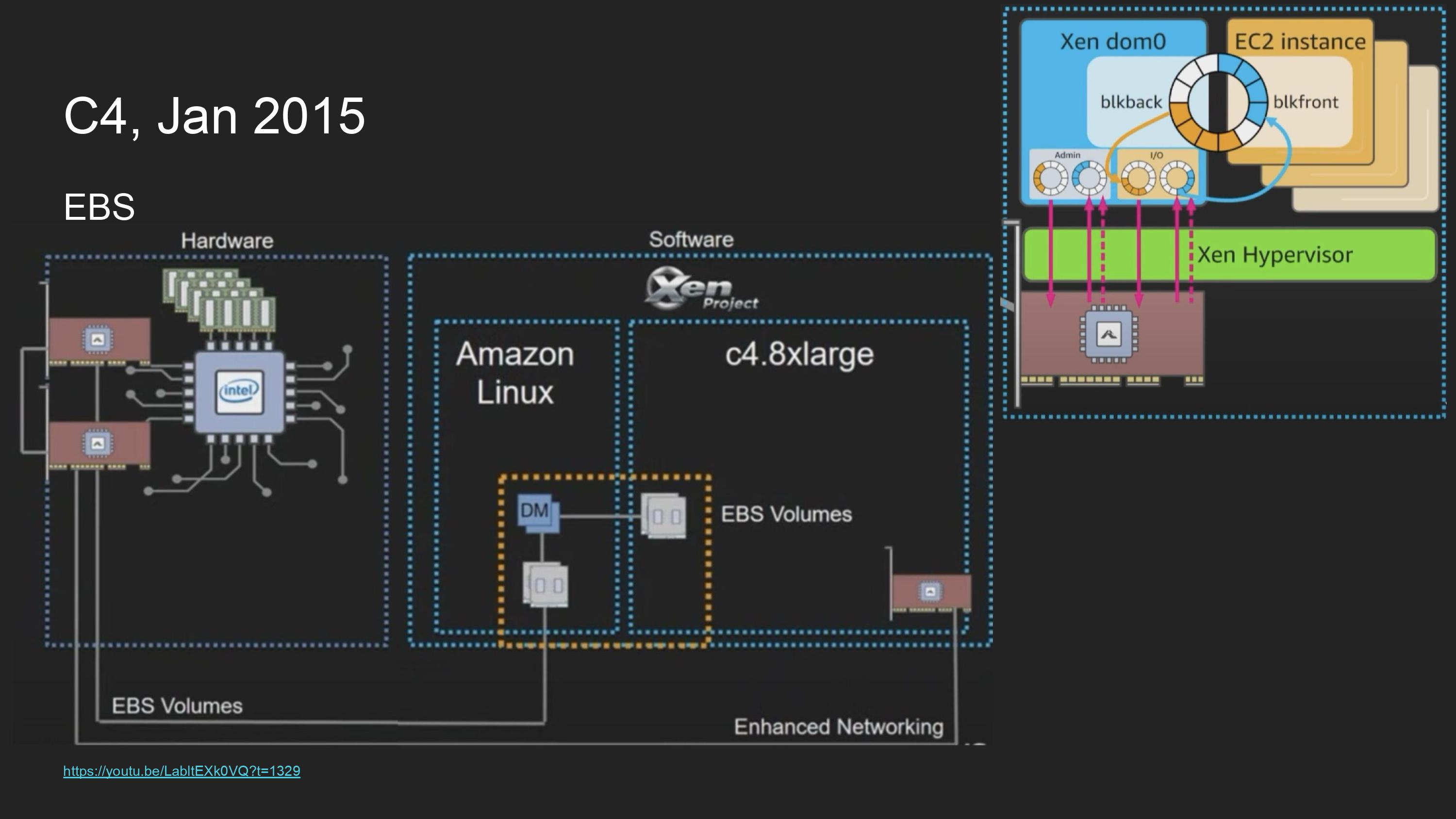 하지만 EBS를 guest OS가 쓰기 위해서 dom0가 ebs를 관리하던것들은 모두 nitro card로 offloading 되었음