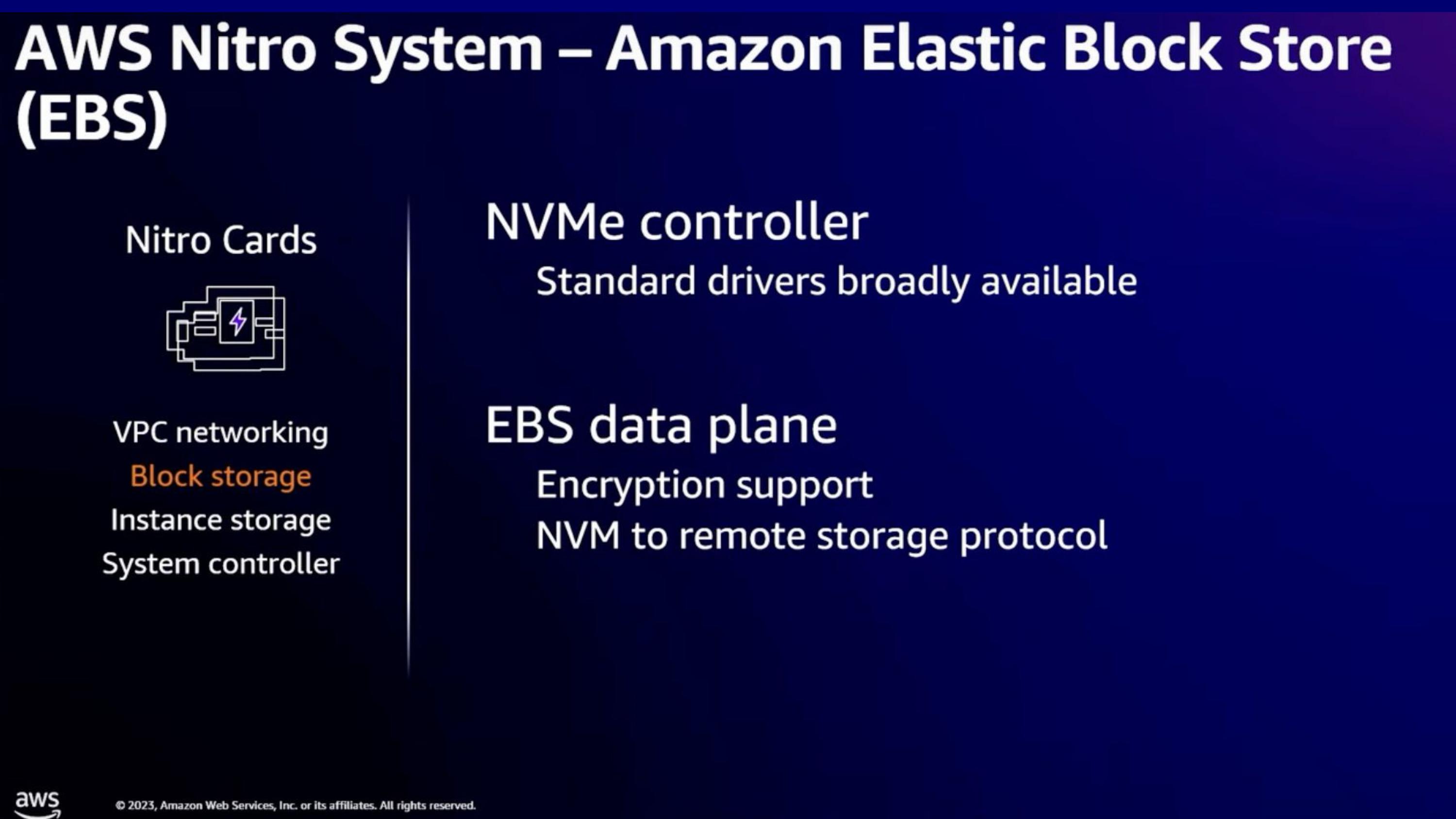 Nitro card에서 network interface로 NVMe를 지원하게 만들었음.